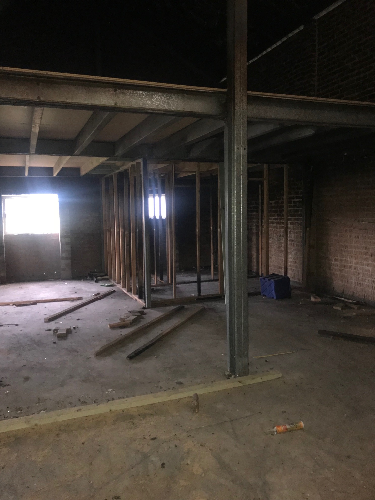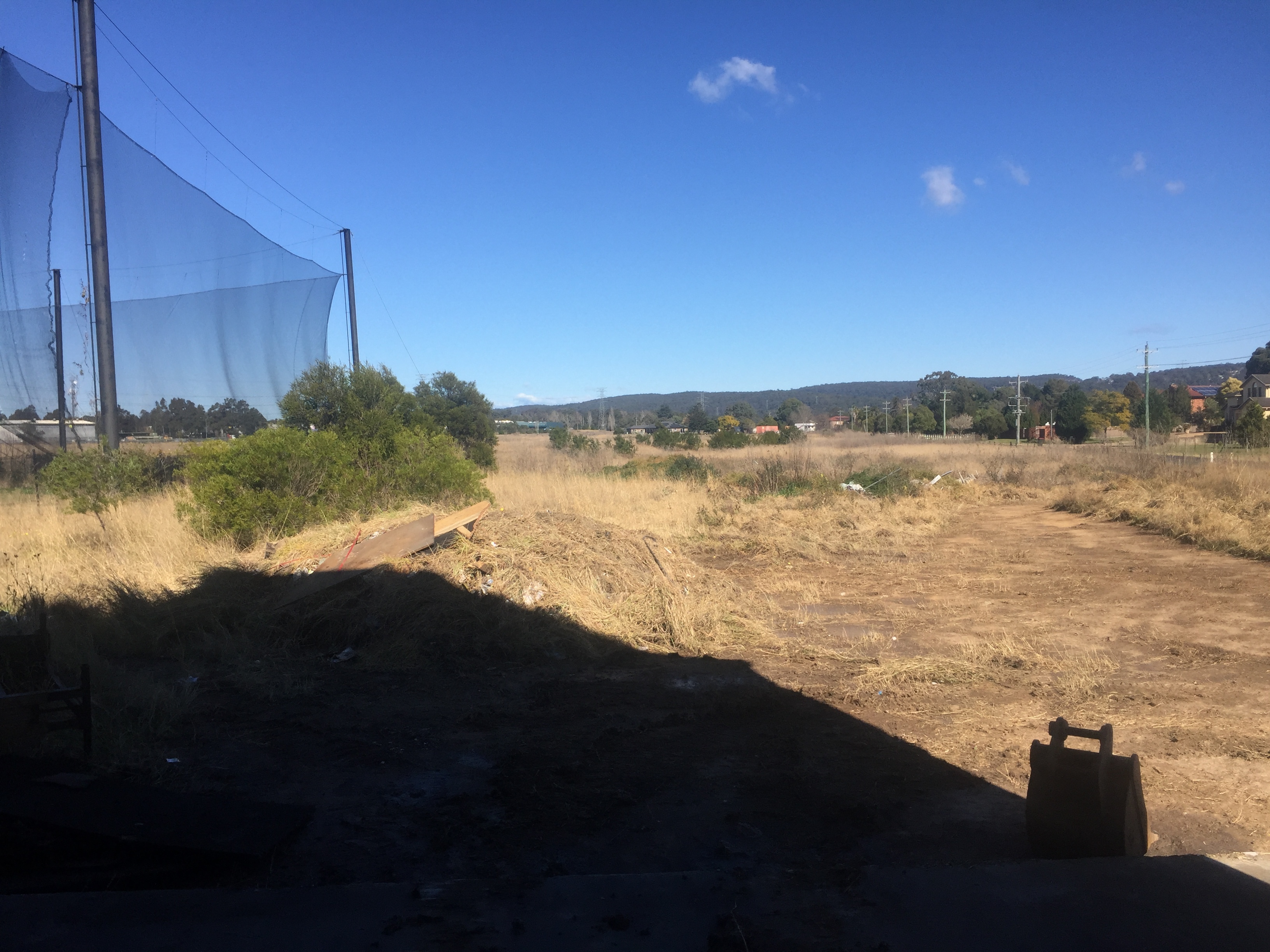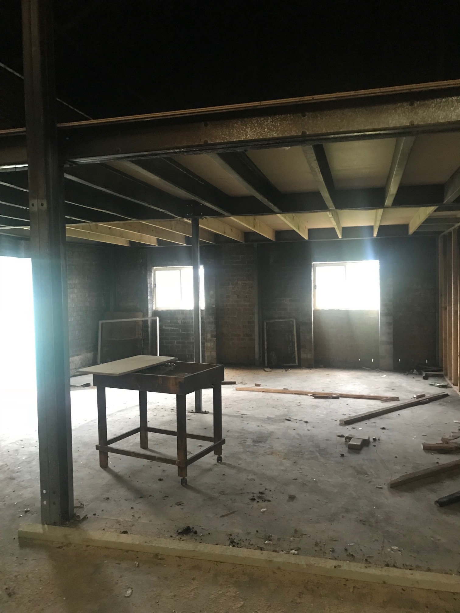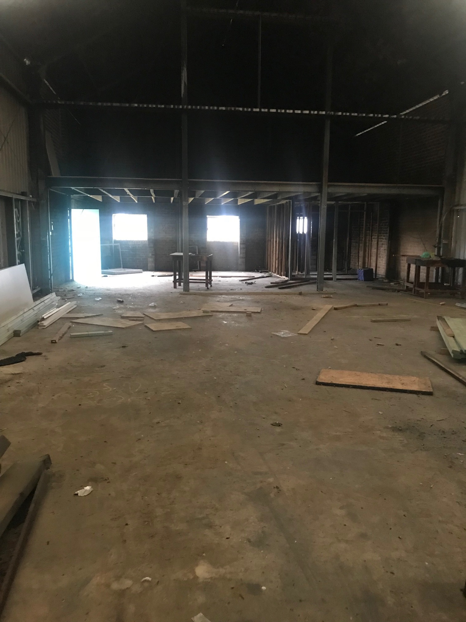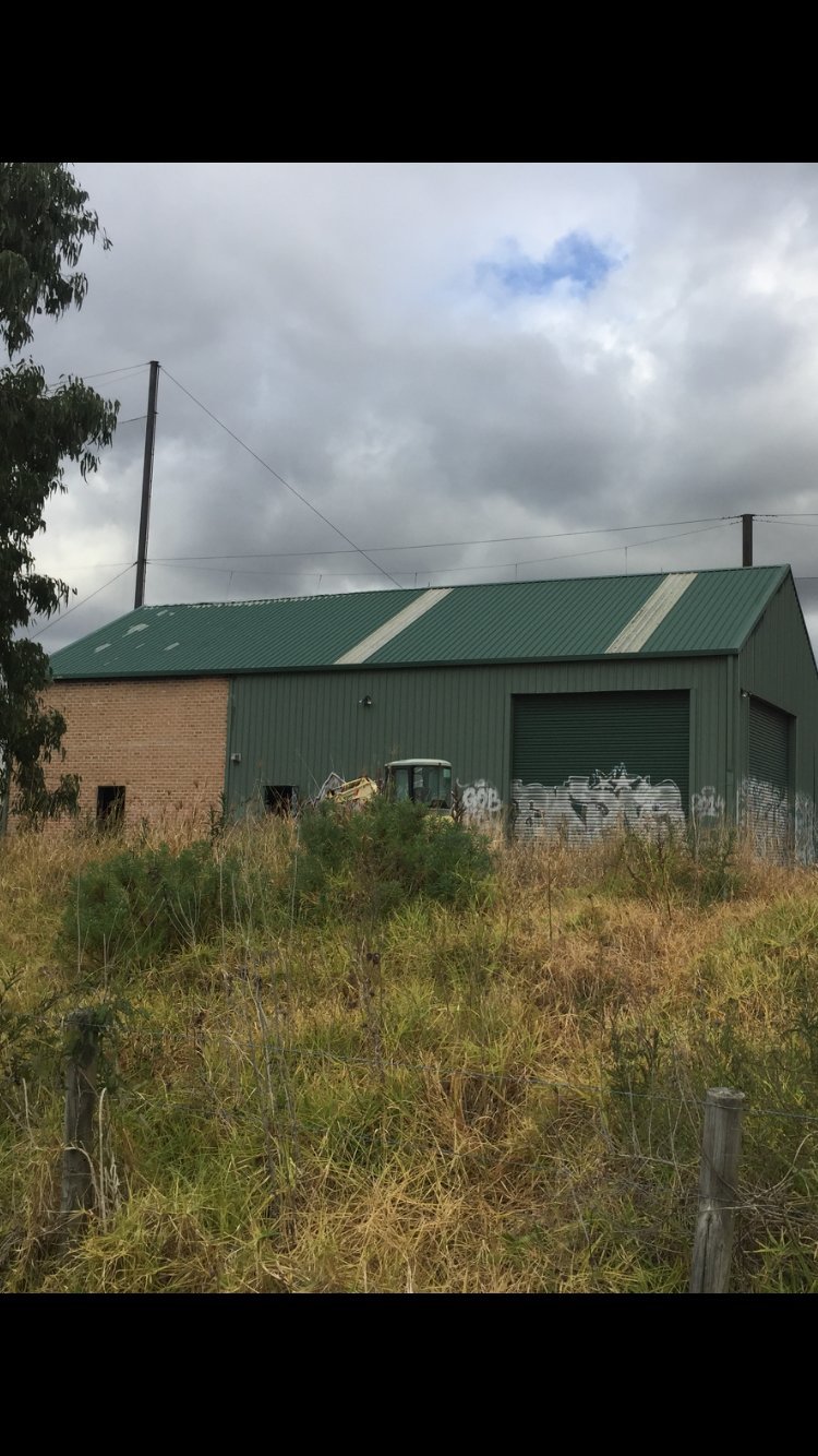 Concrete or cemented floors, brick and colour bond walls, parking in the grass area.