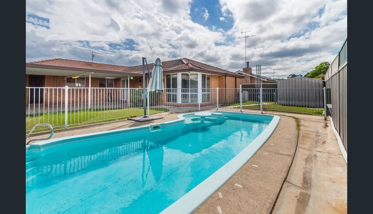 - Fenced inground salt water swimming pool which is solar heated.